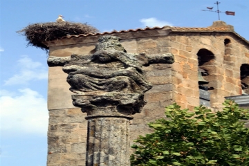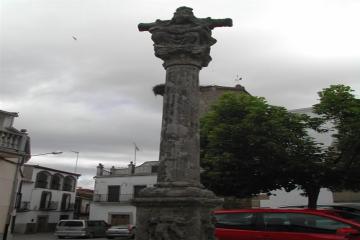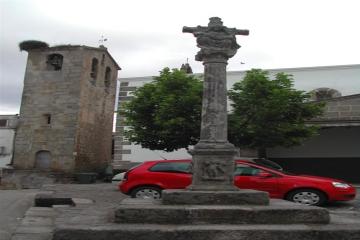 Se trata de una cruz de término, de material granítico, que, ante el peligro que corría, fue trasladada a la plaza de la iglesia. Es una de las más valiosas representaciones de este tipo en toda Extremadura. Fue ejecutada por Francisco Esteban en el año 1559. La columna estrada, que se levanta sobre una basa grabada con elementos religiosos, sirve de sostén a la cruz que acoge las escenas de la Crucifixión y de la Piedad.